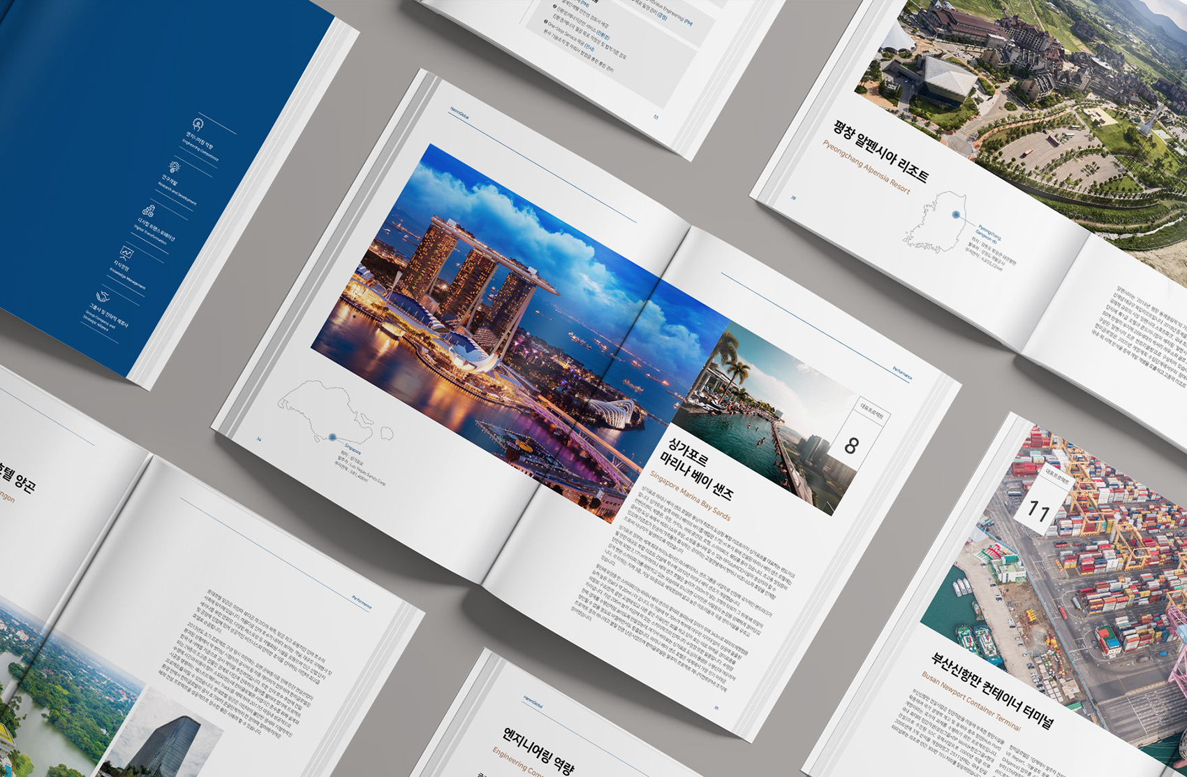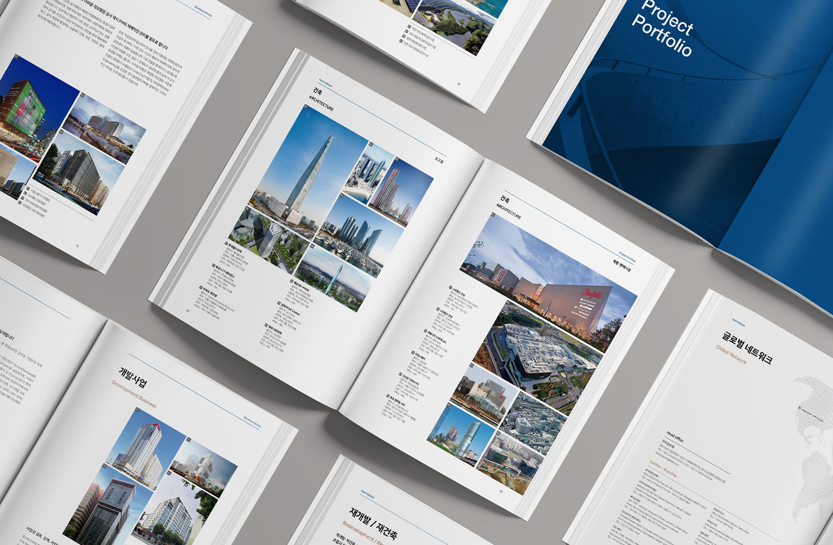 브로슈어를 단순한 회사 소개서가 아닌 건축 도록(圖錄) 형태로 디자인했습니다.